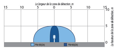 Les détecteurs hyperfréquences FM-60(24), FM-30(24) fonctionnent sur la bande K, ce qui a permit de rendre la zone de détection plus étroite.