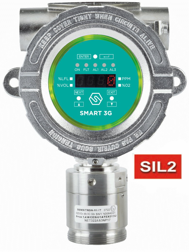 Détecteur de Gaz Acétate de Vinyle, Détecteur de Gaz Acétate d'éthényle, Détecteur de Gaz Ethanoate d'éthényle 0-100% LIE 4-20mA Capteur Catalytique SMART3G-D2 Sensitron Boitier Antidéflagrant avec Afficheur Zone 1 Catégorie 2 S2157AV