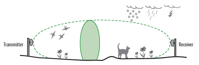 The unique technology of signal processing provides high detection probability and minimum false alarms. So the sensors have higher immunity to rain, snow, fog and lightning, small animals and low vegetation.