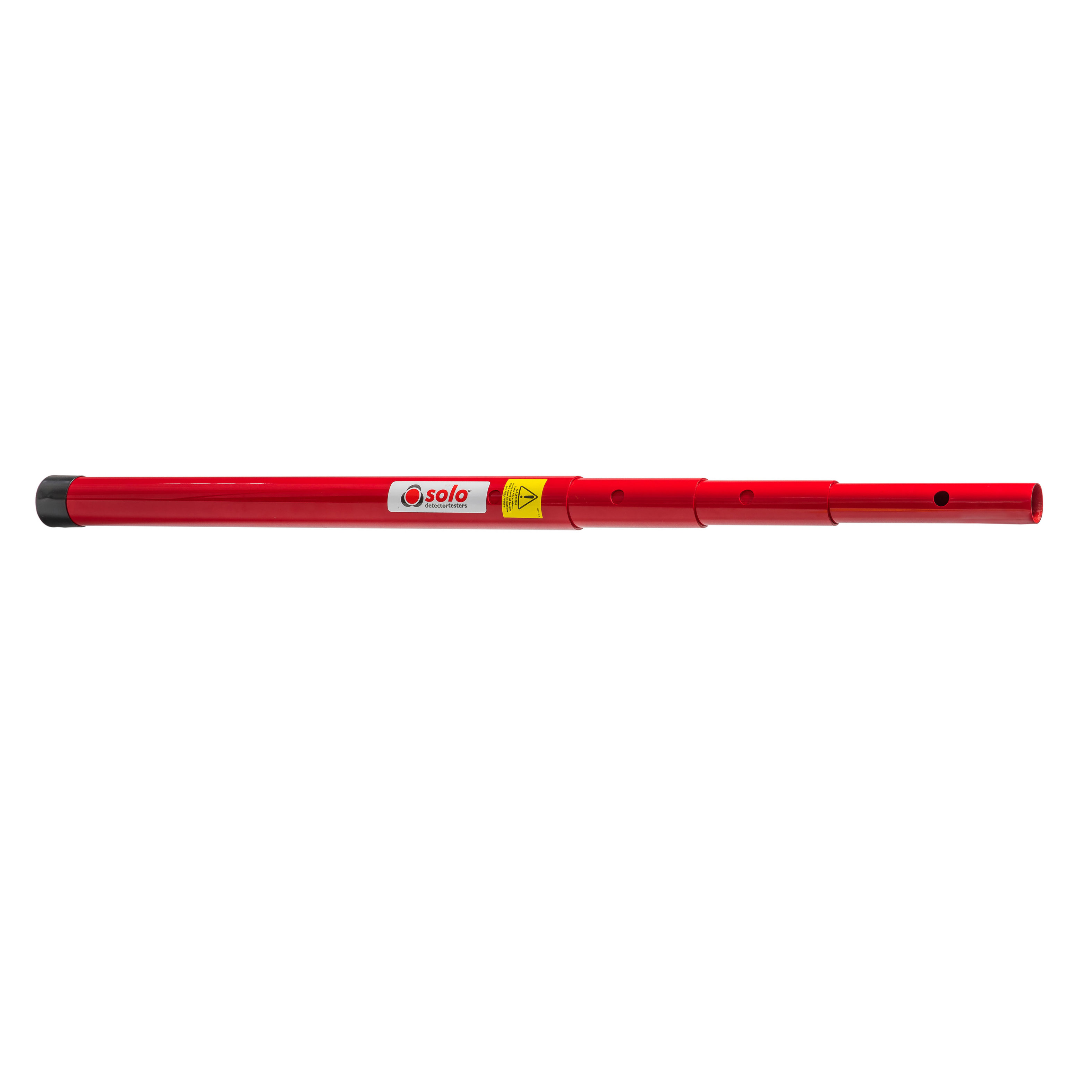 The Solo 110 Access Pole offers safe access to detectors installed at heights of up to 3 metres. Solo poles should always be held vertically when raising or lowering. Ensure that all extension poles and test tool buttons are locked into position before extension and use. The maximum working height using Solo 110 & Solo 111 poles is 4.5 metres for Solo and Testifire. This is achieved using 1 x Solo 110 telescopic pole and a maximum of 3 x Solo 111 extension poles. It is recommended to stand directly under the detector.
